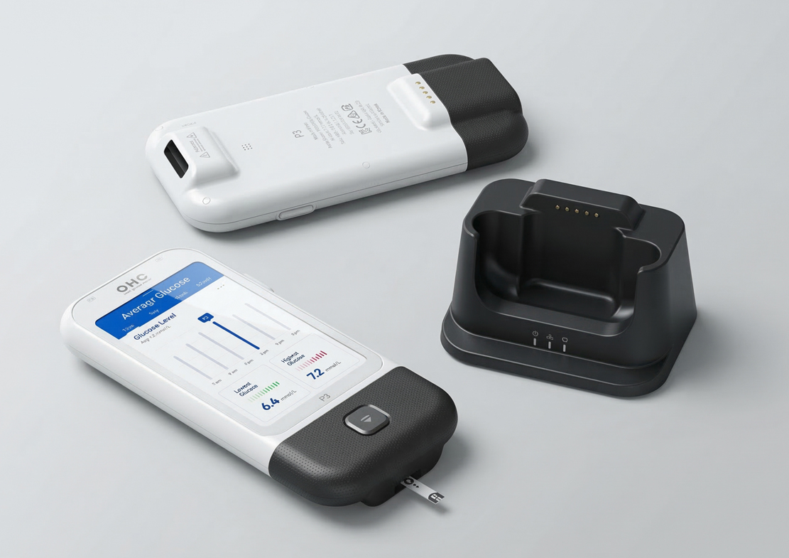 현대의 의료기기 디자인은 단순한 기능 구현을 넘어, 사용자 중심의 인터페이스와 직관적 사용성, 그리고 의료 환경에 적합한 심미성과 안정성을 고루 갖추는 것이 필수 요소로 자리잡았다. HOONSTUDIO가 디자인한 OHC 병원용 혈당측정기는 이러한 시대적 흐름에 정확히 부합하는 결과물로, 단순한 측정기를 넘어 환자와 의료진 모두에게 신뢰와 편의를 제공하는 의료 솔루션으로 기획되었다.