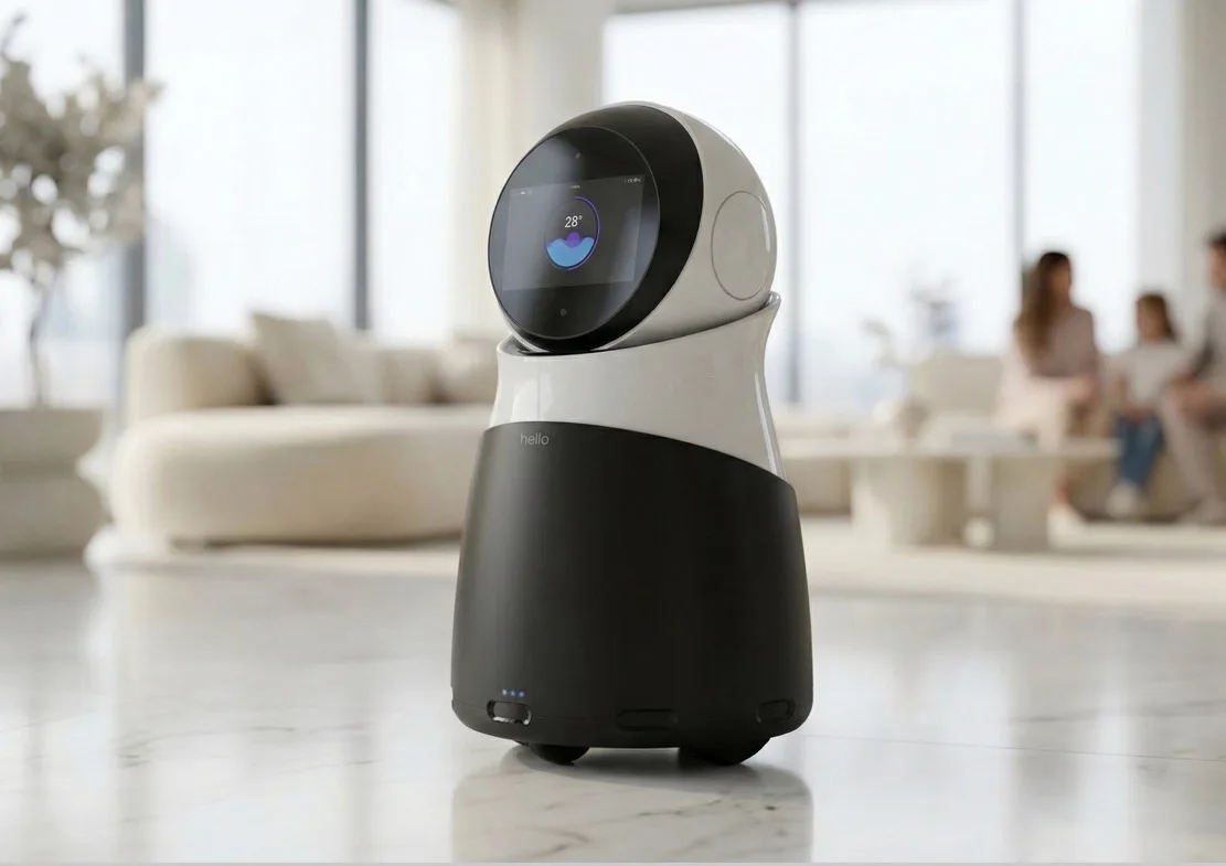 The articulated structure, including a movable head and neck, supports natural gestures like nodding or tilting, reinforcing empathetic communication. Designed with a stable lower base and careful balance, it delivers both functional reliability and a trustworthy visual presence. HOONSTUDIO’s design transforms this robot into more than a machine—it becomes a relatable companion in daily life.