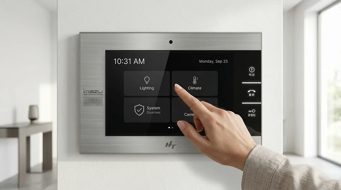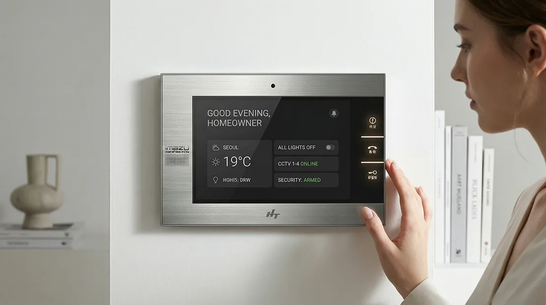 결국 이 10.2인치 프리미엄 월패드는 기능을 담는 화면 장치가 아니라, 거주자의 라이프스타일과 공간의 품격을 연결하는 매개체로 디자인되었다. 벽 위에 설치되었을 때 전자제품이 아닌 하나의 건축 요소처럼 느껴지도록 하는 것, 그리고 사용자가 의식하지 않아도 자연스럽게 집의 중심 인터페이스로 작동하도록 만드는 것 — 이것이 이 프로젝트가 지향했던 디자인의 본질이었다.