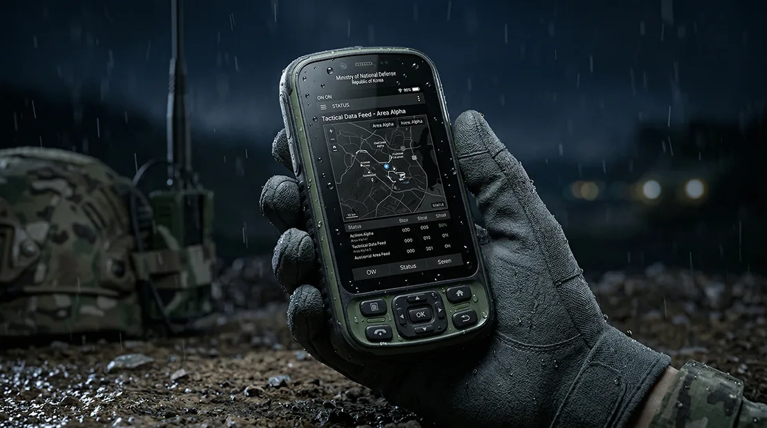 This project, developed in 2013 by order of Wooribyul Telecom for Samsung Thales, concerns the design of the TMFT (Tactical Multi-Functional Terminal), a military-grade communication device. Rather than treating it as a conventional field communication tool, the design approach focused on redefining its form language as a structured digital interface object intended for extreme operational environments.