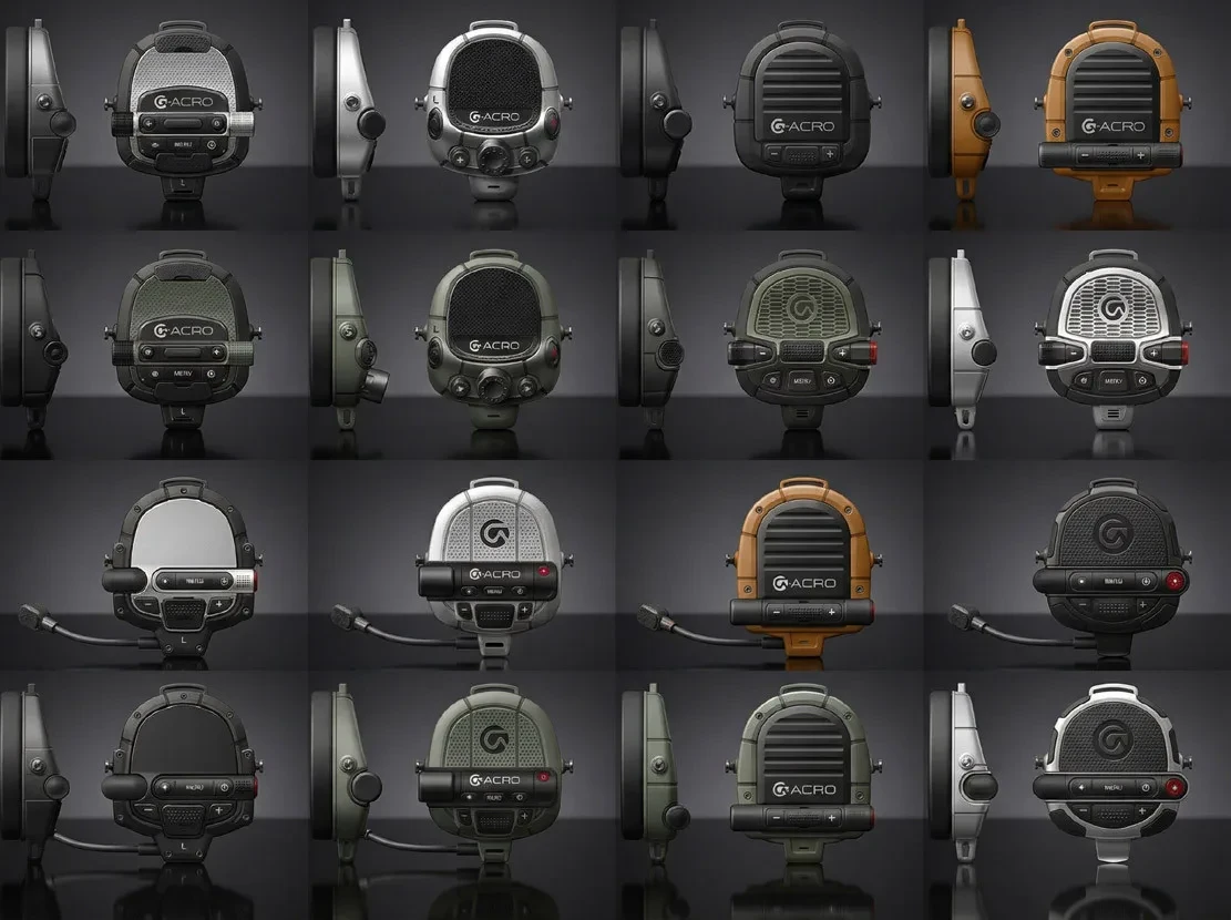 Designed for extreme environments, the ACRO-ANC1 integrates active noise cancellation within a compact housing. Despite the complexity of internal components, the overall structure maintains a balanced geometry with a focus on functional clarity. Buttons are tactile and glove-friendly, shaped with ribbed contours to support operation in darkness or high-mobility scenarios. LED indicators are subtly placed to avoid distraction.